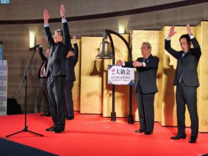 日本証券業協会大阪地区協会巽大介地区会長の万歳三唱で締めくくる